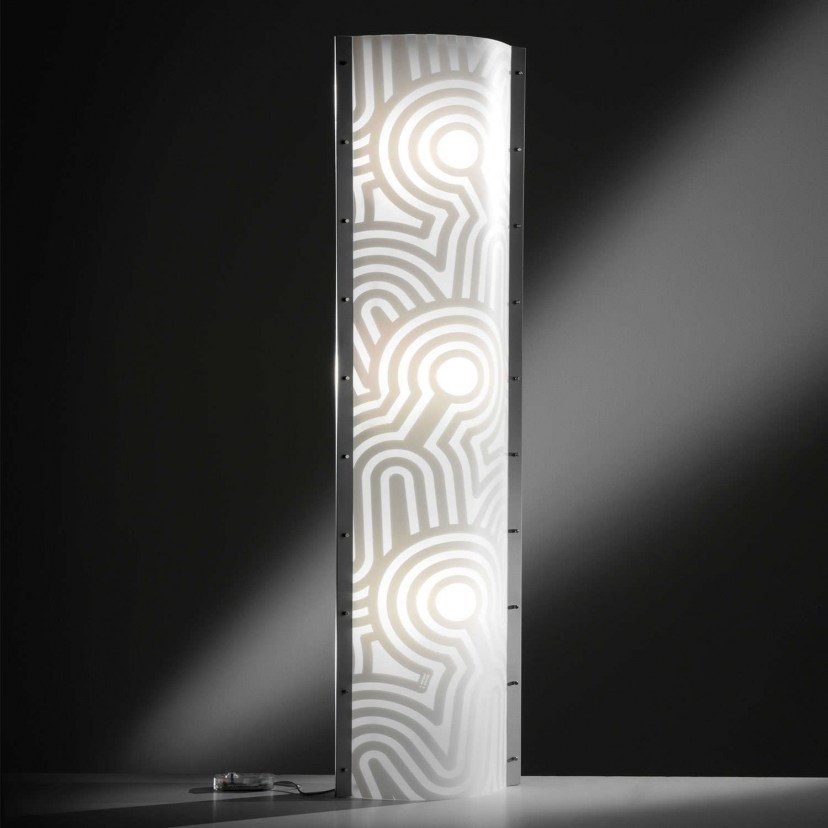The Venti Floor Lamp draws inspiration from the ripples caused when a stone is dropped into water. The artistic graphic decoration on the surface of Opalflex® that surrounds the light source is a creation of the renowned designer Alessandro Mendini. Its white shade emits a calm and relaxed atmosphere in any corner of your home. It requires 3 E27 LED 10W bulbs - not included. Quality: Opalflex® / Aluminum. Dimensions: 1 floor lamp M: 37cm, W: 21cm, H: 160cm.