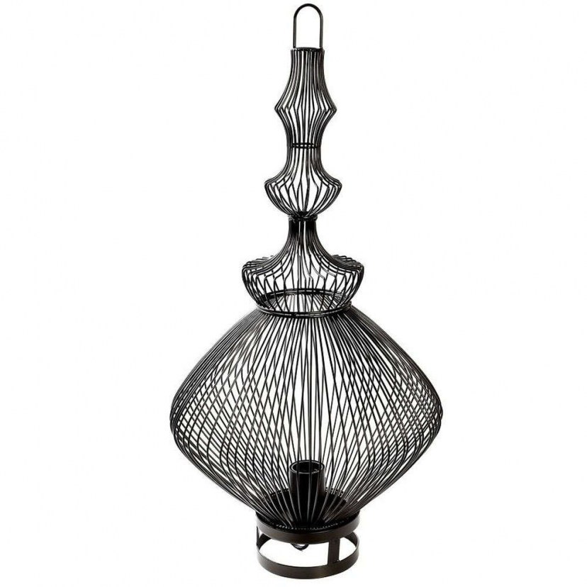 Make the FUT410 Table Lamp yours and use it to upgrade your decoration and uniquely illuminate your space. It is made of durable perforated metal and has a retro style. It requires one E27 bulb max 40W, which is not included. Quality: Metal Dimensions: 1 Lamp: Diameter: 35 cm, Height: 62 cm