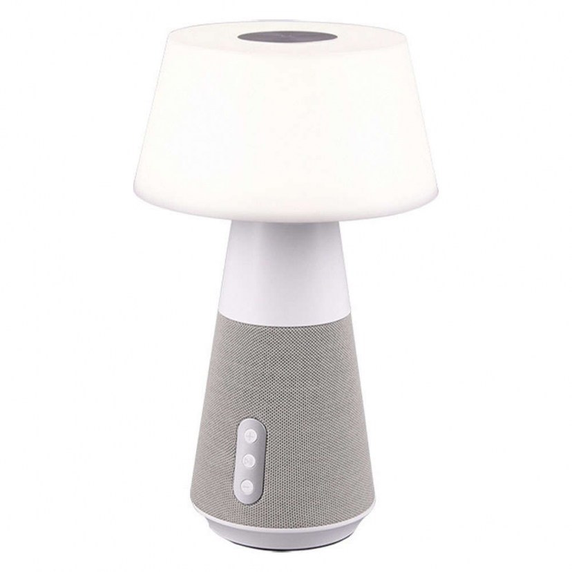 Το Επιτραπέζιο Φωτιστικό DJ R52041101 αποτελεί μία έξυπνη επιλογή, καθώς είναι δύο σε ένα, αφού λειτουργεί ως φωτιστικό αλλά και ως ηχείο. Πρόκειται για ένα επαναφορτιζόμενο φωτιστικό, το οποίο φορτίζει με το καλωδιο USB που διατίθεται στη συσκευασία. Διαθέτει αποσπώμενο αμπαζούρ με ενσωματωμένο LED SMD λαμπτήρα των 4,5W με απόδοση φωτεινότητας 600 lumen. Το φωτιστικό είναι φορητό καθώς διαθέτει μπαταρία, ενώ το ηχείο δεν διαθέτει μπαταρία. Το ηχείο συνδέεται με Bluetooth. Το φωτιστικό διαθέτει τεχνολογία step dimming που σας επιτρέπει να ρυθμίζετε τμηματικά την ένταση του φωτός και τεχνολογία color dimming ώστε να επιλέγετε τη θερμοκρασία του χρώματος του φωτός από 2000Κ σε 4500Κ ή σε 6500Κ.