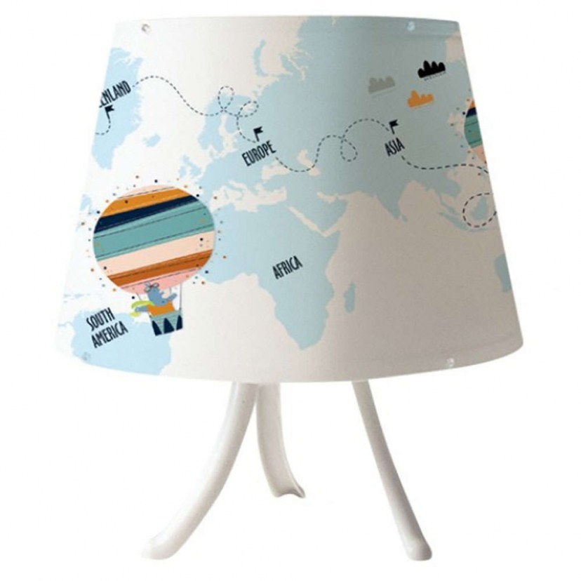 The Tabletop Children's Lamp 3024 is a wonderful choice for illuminating the children's room. It has a durable metal base. It features a design of the map of the Earth, which will make your child dream of the places they will visit. An E27 light bulb is required, which is not included. Quality: Metal Dimensions: 1 Lamp: Diameter: 25 cm, Height: 30 cm