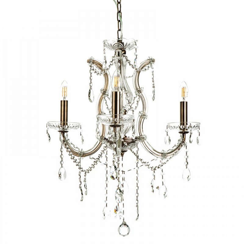Enjoy the grandeur of classic rococo decoration with the stunning Ceiling Light 5244-3/F. This beautiful light features a metal frame, with beautiful glass arms and crystal details in a meticulous design, creating unique shimmering effects with the light. It requires three E14 bulbs, which are not included in the package. The suspension height is adjustable. Quality: Metal & Crystal & Glass. Dimensions: 1 Light: Diameter: 52 cm, Height: 40 cm.