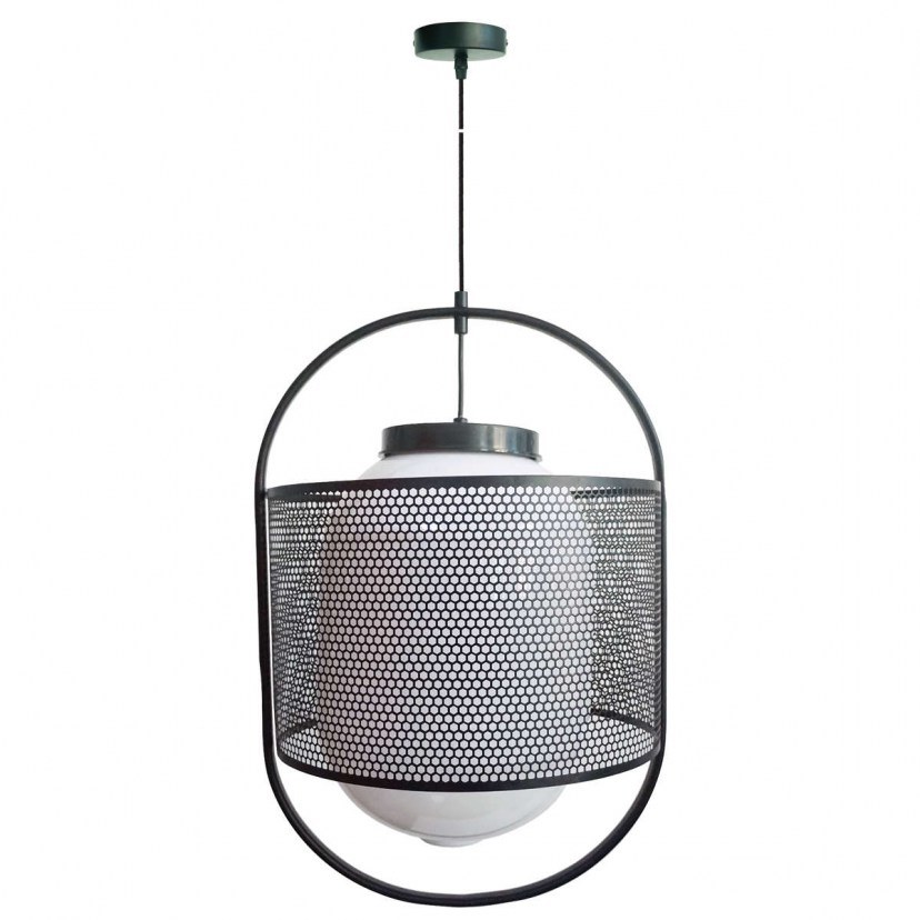 The VK/03160/PE/B Ceiling Light is a beautiful combination of metal and glass that can't help but attract all eyes. It features a perforated metal mesh with white opal glass inside, allowing the light to evenly diffuse throughout the space. It requires an LED E27 MAX 40W bulb, which is not included in the package. Quality: Metal & Glass. Dimensions: See diagram.