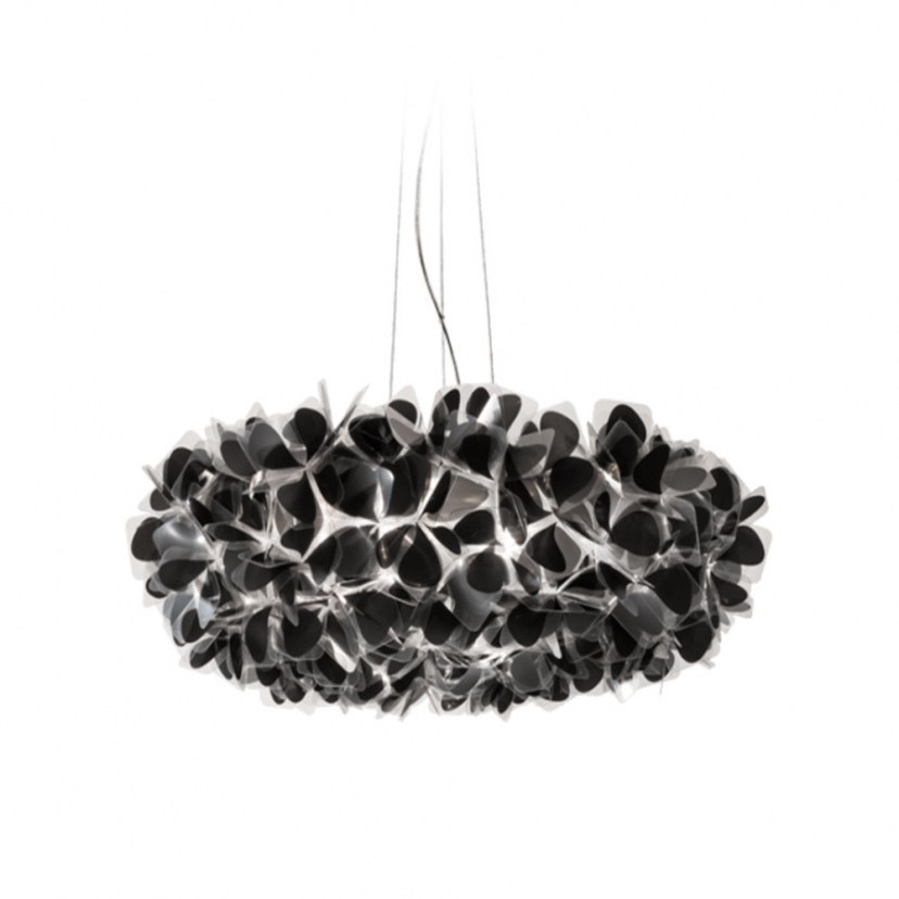 The Clizia ceiling light is a series of shapes that fit together to create a perfect balance of reflections and transparencies. The renowned designer Adriano Rachele is inspired by the natural forms of a cloud that captures the first rays of morning sun, or a treetop that creates a play of light and shadows on the earth's surface, managing the sunlight. All available versions combine aesthetics with functionality, featuring a magnetic hanging system. Requires 4 E27 LED 10W bulbs - not included. Quality: Cristalflex® / Lentiflex® Dimensions: 1 ceiling light diameter: 78cm, height: 28cm