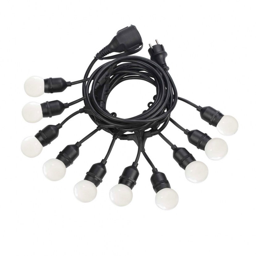Create a wonderful atmosphere in your garden or balcony with the Fiesta Ceiling Light with Socket! It is a plastic cable with a socket, which is waterproof with an IP44 rating, making it resistant to weather conditions. It requires ten E27 bulbs MAX 15W, which are not included in the package.