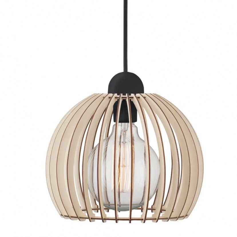 The Chino 25 Pendant Ceiling Light features a unique lampshade made of wooden slats for pleasant light distribution. When the bulb is visible between the slats, it is recommended to use a decorative bulb. This wonderful light fixture is ideal for above the kitchen or dining table, but can also be used in professional spaces thanks to its unique design. It requires one E27 MAX 60W bulb, which is not included in the package.
