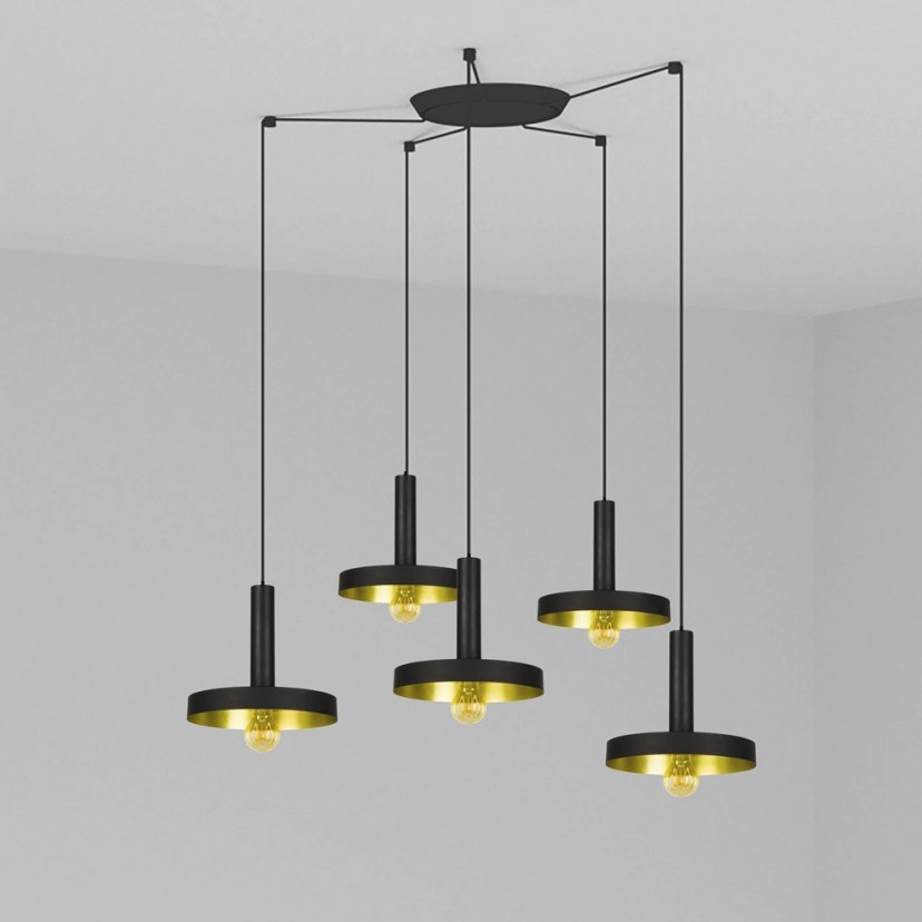 Ceiling Lamp Whizz 20160-5L E27 60W Black-Satin Gold Faro Barcelona