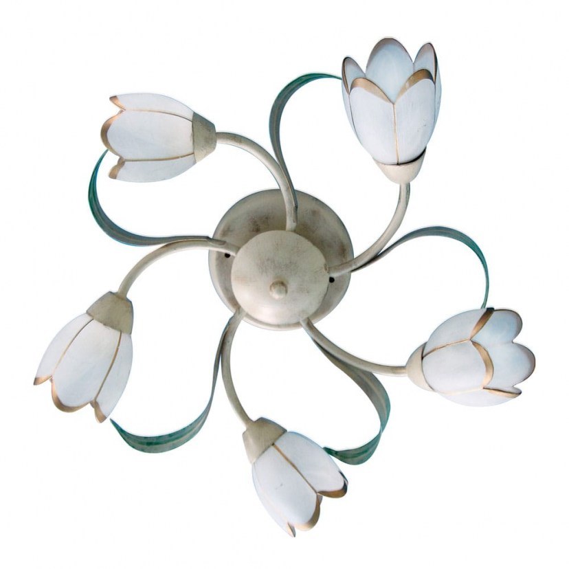 Elegant, glamorous, and impressive, the Ceiling Light - Flush Mount 77-2191 MX10500E-5 Caren will bring radiance and beauty to your space. It features a metallic decapé frame that supports the glass, scavo, lighting fixtures resembling blooming flowers. The wonderful design and stunning construction make it irresistible. It is a five-light fixture that will provide abundant light to your space. Five E14 MAX 60W bulbs are required, which are not included in the package. Make this attractive decorative and functional idea from designdrops yours now! Quality: Glass & metal Dimensions: 1 Light Fixture: Diameter: 56cm, Height: 20cm