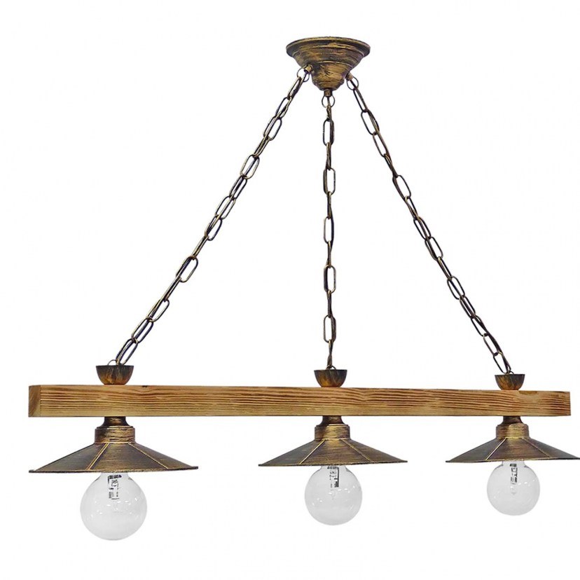 Choose the R-150RAGA 3/L light fixture to complete your decoration with style and personality. Its unique design will enhance your space, while offering exceptional quality and value. 3x E/27 bulbs are required, but not included. The dimensions are: L:100cm W:24cm H:67cm. The materials used are wood and plastic. The package includes one light fixture.
