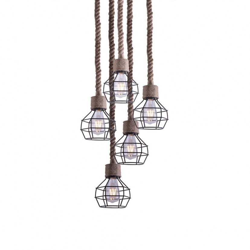 The biggest trend in lighting fixtures is rope, which especially when combined with metallic surfaces creates a dynamic aesthetic result that attracts attention. You can also create a space with personality and style by placing the Ceiling Light - Rail 77-3685 Grenade-5. It is made of metal and rope that harmoniously combine and will make the office, bedroom, living room or any other space you choose simply irresistible. 5 E27 max 60w bulbs are required, which are not included in the package. Quality: Metal & Rope. Dimensions: 1 Light Fixture: Diameter: 40 cm, Height: 150 cm.