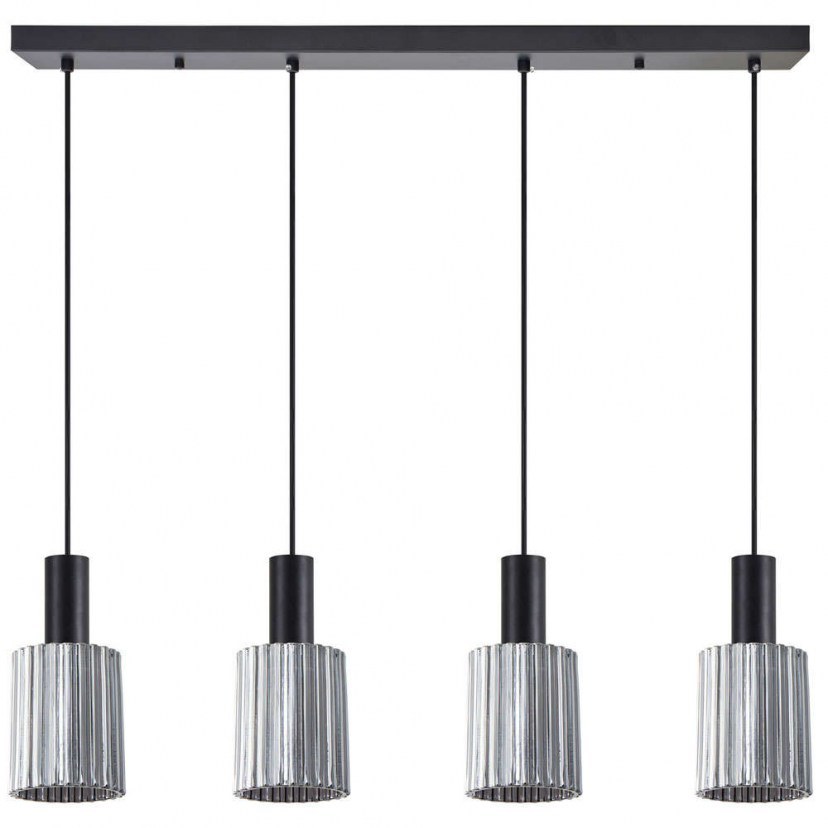 Extremely impressive and capable of providing rich light in your space, the Ceiling Light - Rail Adept Tube 77-8489 is a metal light fixture that features four glass lampshades with a unique finish and embossed striped design, making it irresistible. It requires 4 E27 MAX 60W bulbs, which are not included in the package. Quality: Metal & Glass Dimensions: 1 Light Fixture: Length: 85 cm, Width: 14 cm, Height: 300 cm
