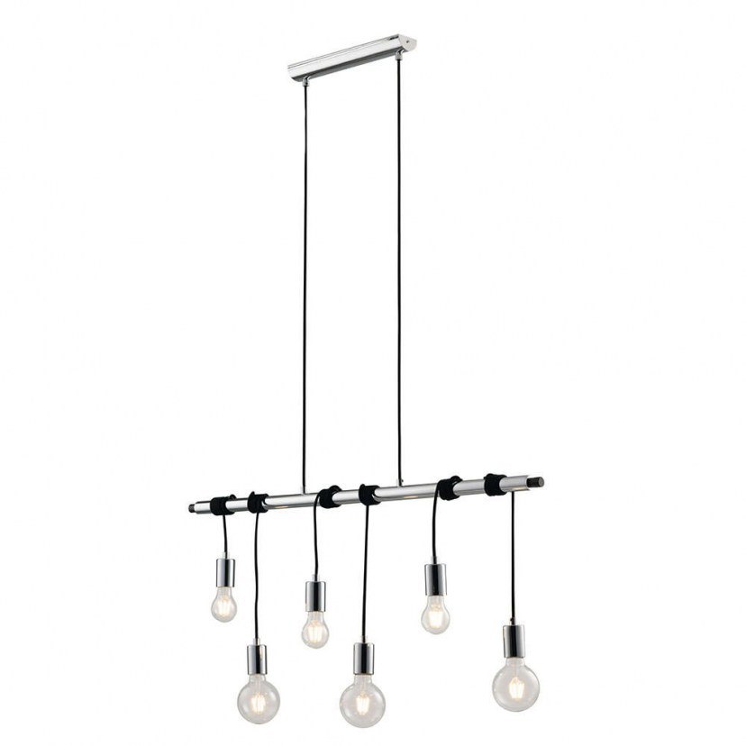 A prototype lighting fixture that can be placed in the large spaces of your home or business. The Ceiling Light - Rail I-Admiral-S6 will impress you with its smart design and shiny color. It is made of chromed metal and has long fabric cables woven around the shiny rail. Six E27 max 40W bulbs are required, which are not included in the package. Quality: Fabric & Metal. Dimensions: 1 Light: Length: 100 cm, Height: 120 cm.
