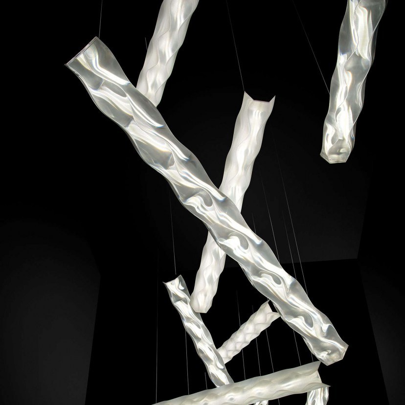 The new, silky finish of the Hugo collection is elegant and flexible, adapting to any space with its helical design and uniform soft light. The ceiling track light has been designed by the creative department of Slamp and requires a LED bulb MAX 30W where the brightness is 3000lm and the light temperature is 2700K warm light. The bulb is included. Quality: Lentiflex. Available dimensions: 1 ceiling track light L:100cm H:9cm (Cable length: 140cm).