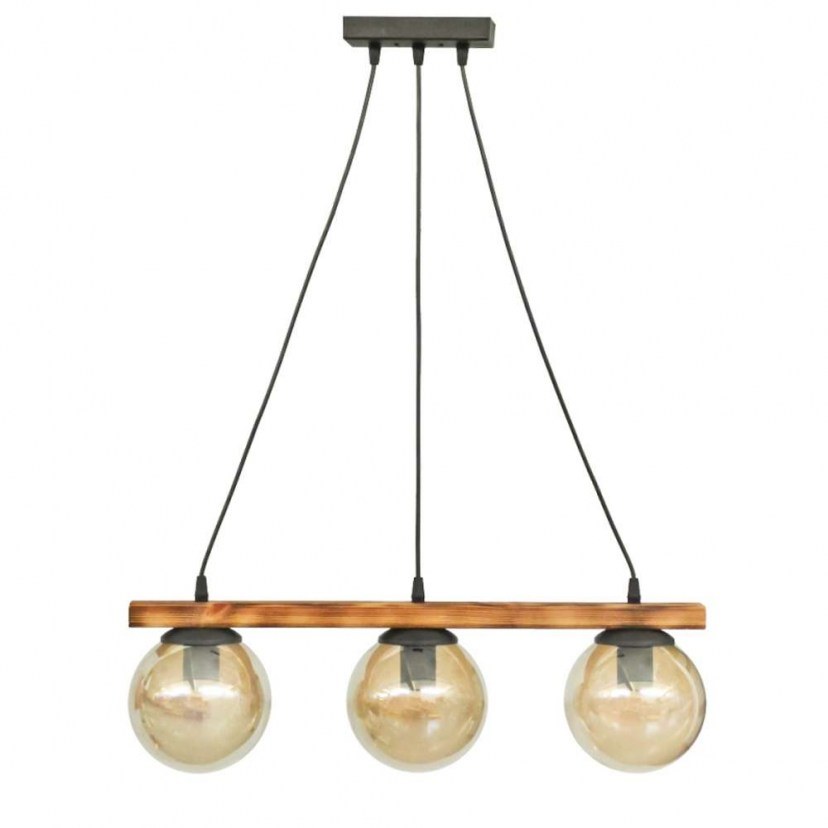 The Ceiling Light - R-600 Cable 30-0073 attracts attention and impresses! It is a unique light fixture with three glass spherical lampshades and a wooden detail in a natural shade, giving it a more rustic appearance. It requires three E27 bulbs, which are not included in the package. Get it now from designdrops and take advantage of the excellent quality-price ratio! Quality: Glass & Wood Dimensions: 1 Light Fixture: Diameter: 15 cm, Length: 60 cm, Height: 80 cm