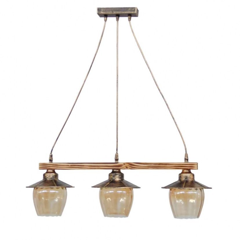 If you are a fan of vintage aesthetics, then you will definitely love the Ceiling Light - R-98 Cable 30-0069! It is a unique light fixture with antique plastic caps and glass lampshades that allow the light to gently diffuse in your space. It features a wooden detail in a natural shade, giving it a more rustic appearance. It requires three E27 LED bulbs, which are not included in the package. Quality: Glass & Wood & Plastic Dimensions: 1 Light Fixture: Diameter: 18.5 cm, Length: 70 cm, Height: 80 cm