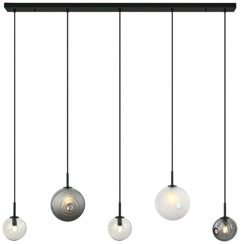 Discover the unique beauty and impressive design of the Ceiling Lamp - Raga 23056. This lamp exudes a sense of modern elegance and distinct personality, making your space stand out in a unique way. The metal base offers durability and stability, while the spherical glass lampshades create a magical atmosphere of brightness in the space. Shades in different colors with embossed details add dynamic character and vibrancy to the lighting, creating an eye-catching play of light and color. Requires five G9 LED MAX 5W bulbs, which are not included in the package. Quality: