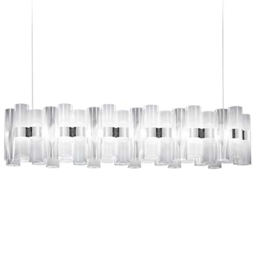 The Ceiling Light - La Lollo Rail is an amazing representation of the 1950s, inspired by the charm of the era and the divas who conquered it. This lighting series revitalizes these images, bringing them to life in the modern world. The cylinders of this light are made of techno-polymeric material and are available in various shades of contemporary prism metallization. The geometric patterns formed on the cylinders add an interesting and dynamic character to the light. The central illuminated ring combines functionality with aesthetics, creating a stunning visual experience. It is ideal for use in public spaces, residential installations, or even for impressive dramatic installations. The design of this light belongs to Lorenza Bozzoli and represents an interesting connection between the past and the future, creating an amazing work of art. It features integrated LED lighting of 110W with warm white light (2700K) and a luminous flux of 12420 lumens. Quality: