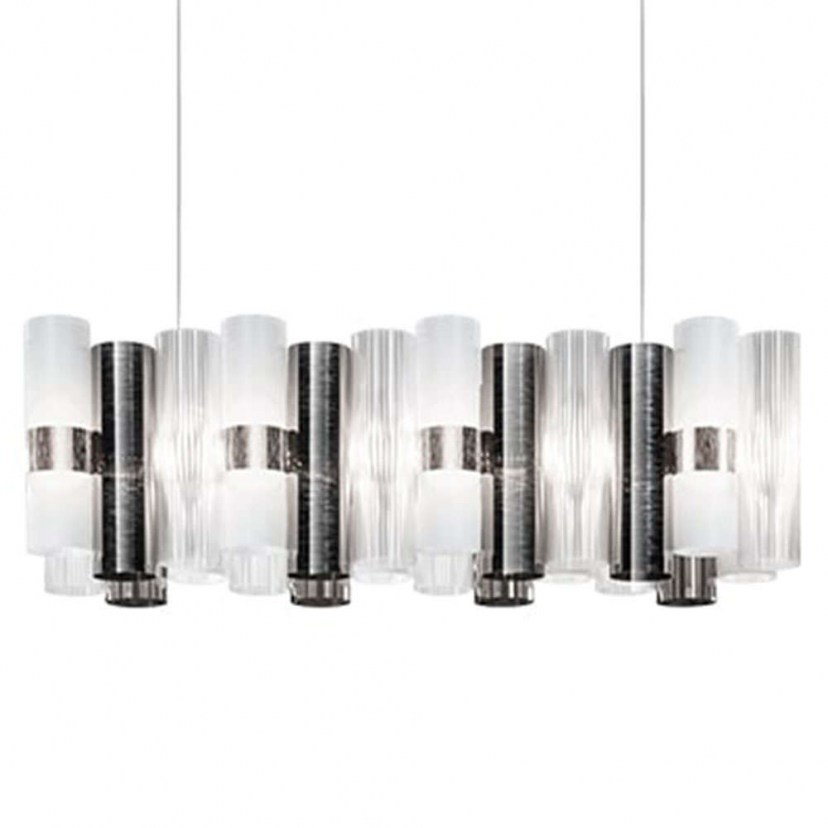 The Ceiling Light - La Lollo Rail is an amazing representation of the 1950s, inspired by the charm of the era and the divas who conquered it. This lighting series revitalizes these images, bringing them to life in the modern world. The cylinders of this light fixture are made of techno-polymeric material and are available in various shades of contemporary prism metallization. The geometric patterns formed on the cylinders add an interesting and dynamic character to the light fixture. The central illuminated ring combines functionality with aesthetics, creating a stunning visual experience. It is ideal for use in public spaces, residential installations, or even for impressive dramatic installations. The design of this light fixture belongs to Lorenza Bozzoli and represents an interesting connection between the past and the future, creating an amazing work of art. It features integrated LED lighting of 70W with warm white light (2700K) and a luminous flux of 7820 lumens. Quality: