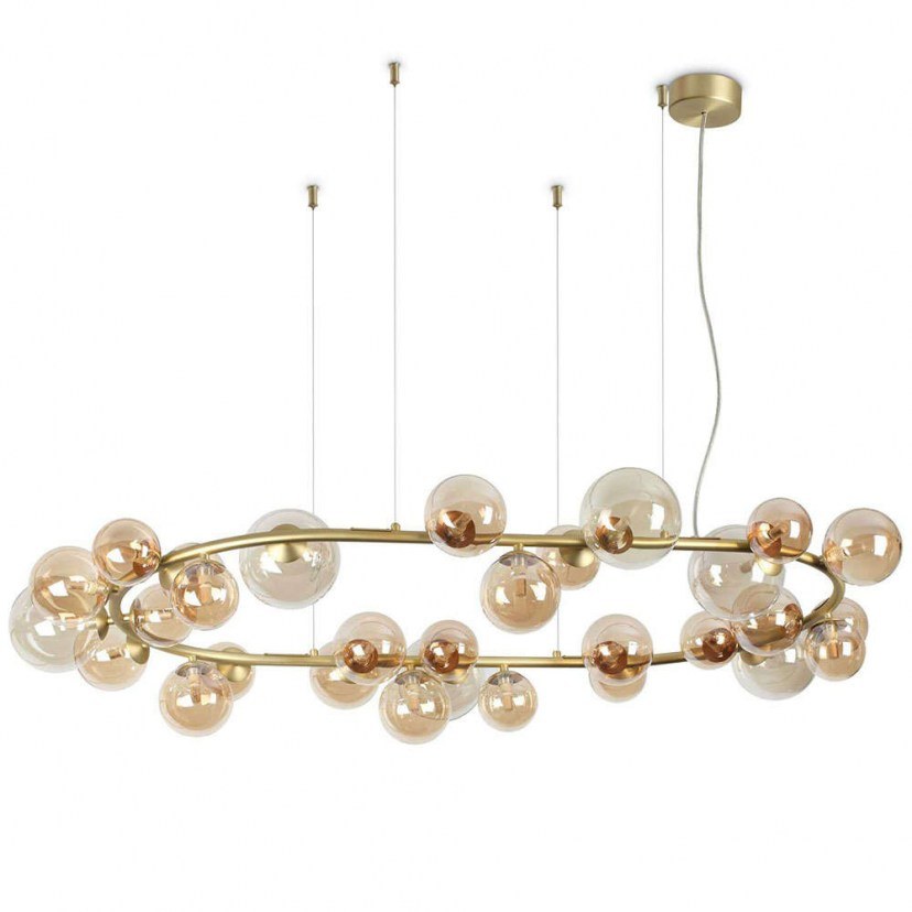 Create a modern living environment with a modern character and luxurious decorative touches by choosing furniture, lighting, and decorative items from designdrops! The Perlage Ceiling Light is a modern decorative option, made from high-quality materials. It features a metal frame and 30 spherical lampshades made of blown glass with a beautiful color. It has 30 G9 LED bulbs of 3W each with warm white light (3000K) and a brightness output of 370 lumens. You can replace the bulbs with G9 MAX 15W.
