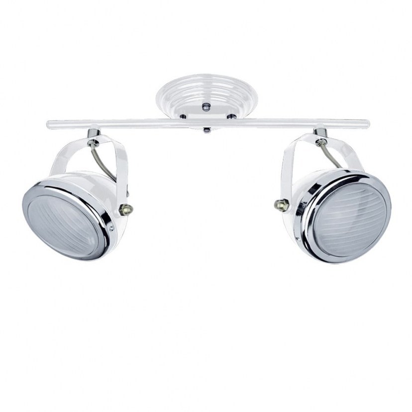 Illuminate your space with the Juno White Spot Ceiling Light Fixture 77-2193 T12022A-2TU. It is a modern and economical choice that will leave you completely satisfied as soon as you install it in your space. Made of metal and glass for durability and excellent appearance. The chrome ring that adorns it enhances the aesthetic result. It has two 40W G9 bulbs, which are included in the package. Get it now at the best market price only from designdrops! Quality: Metal. Dimensions: 1 Light Fixture: Length: 41cm, Width: 15cm, Height: 23cm.