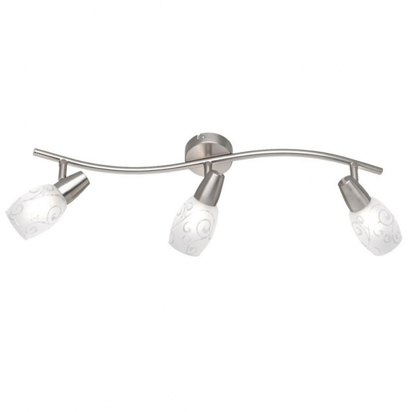 The Ceiling Light - Colmar Spot R80023007 is ideal for your living room, bedroom, or professional space! It is a modern yet timeless light fixture, featuring a metal frame with a matte nickel finish. It has three elegant lampshades made of satin glass with intricate designs. It requires three E14 MAX 28W bulbs, which are not included in the package. It can be easily and affordably yours with a simple click on designdrops! Quality: