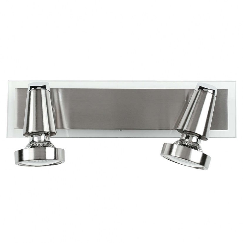 The Ceiling Light - Miami SPOT-MIAMI 02 stands out for its refined and elegant design. It is a beautiful light made of nickel-plated metal, which features a glass detail on the base. It has two adjustable spotlights, which can tilt up to 100° and rotate up to 320°. It comes with two 5W GU10 bulbs with warm light (2700K) and a luminous flux of 400 lumens each. Beam angle of 100°.