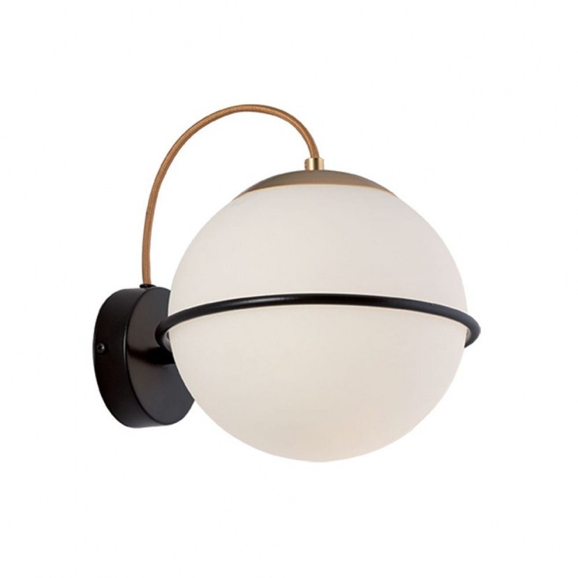 A stylish light fixture can radically change the aesthetics of your space, which is why we suggest placing the Ferero 3094000 Wall Light-Applique on your favorite piece of furniture. It features a delicate metal base in black color adorned with gold details. It has a beautiful opal glass sphere that allows the light to diffuse softly in your space. It requires one LED/CFL E27 MAX 12W bulb, which is not included in the package. Quality: Metal & Glass. Dimensions: 1 Light Fixture: Diameter: 20 cm, Length: 24 cm, Height: 22 cm.