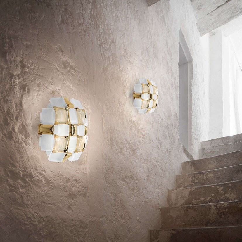 The Mida Applique Wall Light is inspired by the world of high fashion jewelry. It features precious stones and makes every room luxurious and aristocratic. The renowned designer, Adriano Rachele, used colored and metallic stones to create an impressive collection of jewelry. Each one is handmade and has an integrated magnetic system that facilitates installation and maintenance. Two E14 bulbs, 2x6W LED Filament, are required, which are not included. The light is imported from Italy, so the estimated delivery time is about 18 days. Quality: Lentiflex® / Opalflex® / Goldflex® / Steelflex® / Copperflex®. Dimensions: 1 Light: Width: 12 cm, Height: 32 cm, Length: 32 cm.
