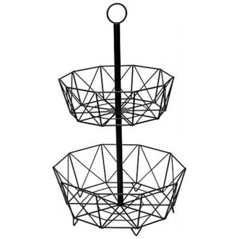Organize your kitchen easily and simply by choosing the 2-Level Fruit Basket AST404! It is a metal construction with two baskets, in which you can store fruits, vegetables, dried foods, etc. It is also ideal for professional use. It is hand washable. Quality: Metal. Dimensions: 1 Fruit Basket: Length: 37 cm, Width: 30 cm, Height: 60 cm.