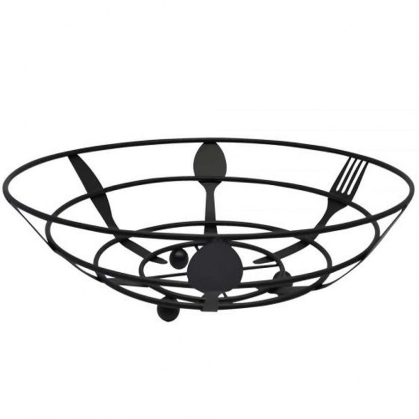 Organize your personal space with style and flair by choosing from the wide variety of designdrops! The round Fruit Bowl 816958 has a metallic construction and is available in a matte black color. Its decoration is completed by various cutlery on its frame. A stylish choice for storing and displaying fruits and vegetables!