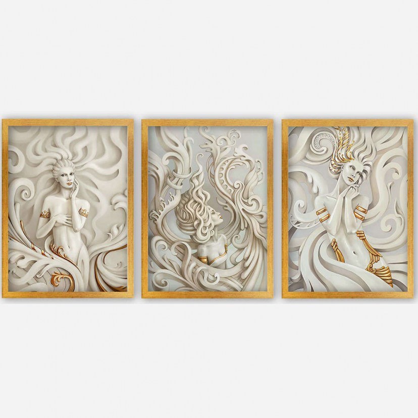 The 364LUL1289 Frame Set is a unique collection of three paintings depicting mythical female figures, exuding a sense of epic grandeur and refined aesthetics. These works of art combine the aesthetics of myth with contemporary art, offering a unique atmosphere to your space. This stunning work of art is crafted with the strictest attention to detail and using high quality materials. The MDF ensures durability and long life, while the 2 cm thickness offers a luxurious sense of depth and presence. The plastic frame, with its contemporary finish, perfectly complements the art, accentuating every line and every color with a modern and sophisticated touch.