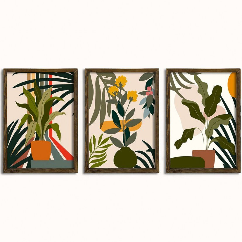 The 820EVL4628 Frame Set includes three stunning frames with beautiful botanical designs, highlighting the simplicity and beauty of nature through artistic expression. Each frame presents a unique composition of floral motifs, with detailed depictions of leaves, flowers and other plant elements that exude freshness and vibrancy. UV printing ensures that colors remain vibrant and unchanged over time, providing long-lasting brightness and intensity to the design. The frames are made of high-quality MDF, ensuring stability and durability, and have a beautiful solid wood frame, which gives the work a natural, warm feel.