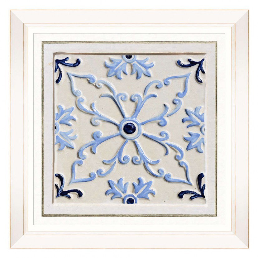 An emblematic pattern with stunning shades is represented in the 'Folk Tiles' IV FA13251 frame. The delicate markings and elegant lines are highlighted in authentic expressions of traditional character. Printed on high-quality paper and completed with an eclectic white frame and metal hooks for hanging. There may be a deviation of 3-5cm in the specified dimensions due to the uniqueness of the product. The product is imported exclusively for you from abroad, so there may be delays in delivery time. Quality: Wood & Float glass & Paper & Metal. Dimensions: 1 Frame: Length: 50 cm, Height: 50 cm.