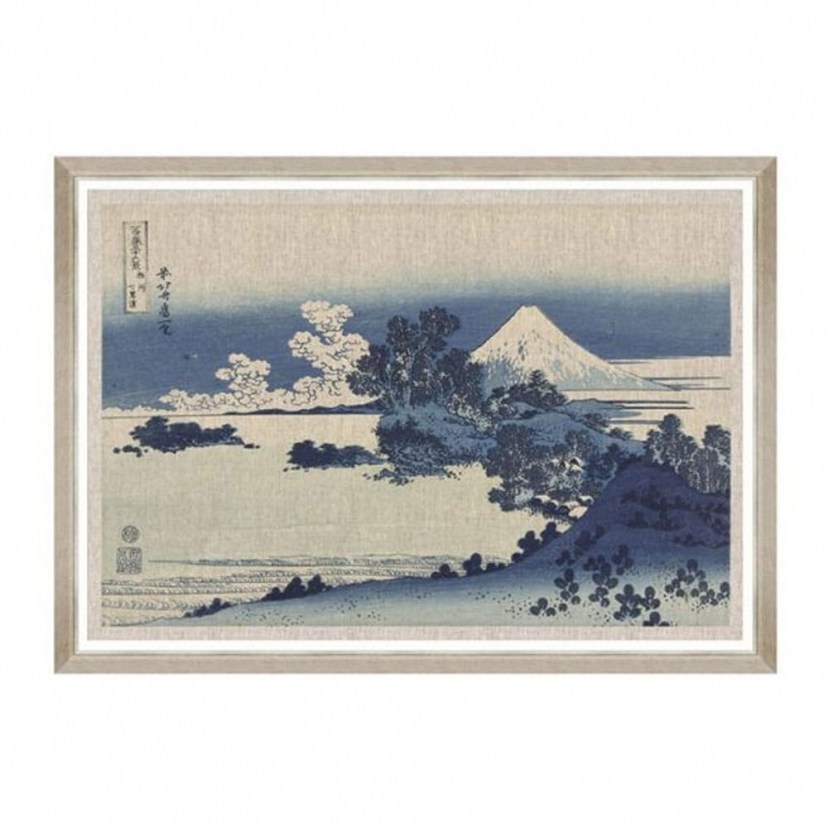 An amazing work of art by Hokusai depicting a natural landscape with trees and houses next to the water and with the snow-capped Mount Fuji dominating in the background. The Shichiri Ga Hama By Hokusai FA13134 canvas is printed on high-quality fabric and comes with a wooden frame. There may be a 3-5cm deviation in the stated dimensions due to the uniqueness of the product. Quality: Wood & Acrylic glass & Fabric & MDF. Dimensions: 1 Canvas: Length: 100 cm, Height: 70 cm.