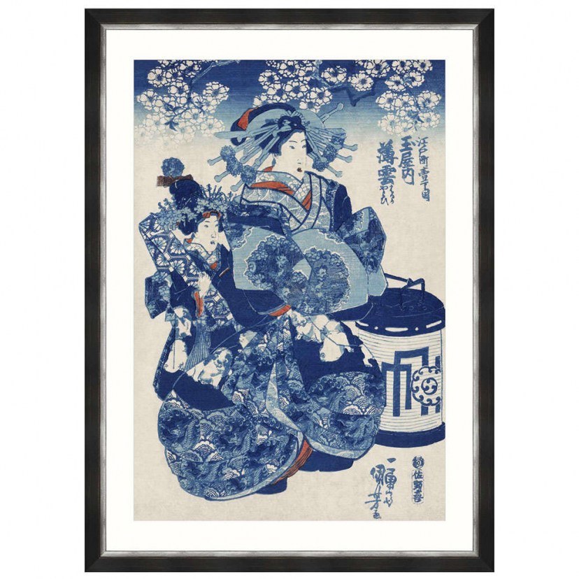 An amazing Japanese art depicting a beautiful courtesan posing in traditional attire. The artwork, The Courtesan Hanao Ogi-Ya FA13441, is inspired by the original woodblock print painted with Indigo dyes by the Japanese artist Utagawa Kuniyoshi, who adopted the traditional Ukiyo-e style of the era. It is printed on fine art paper, which enhances the aesthetic result! It features special protective glass and metal fittings for hanging. There may be a 3-5cm deviation in the mentioned dimensions due to the uniqueness of the product. The latex inks used are certified to comply with the Nordic Swan Environmental Standard. The inks are odorless, highly durable, and all waste is responsibly disposed of.
