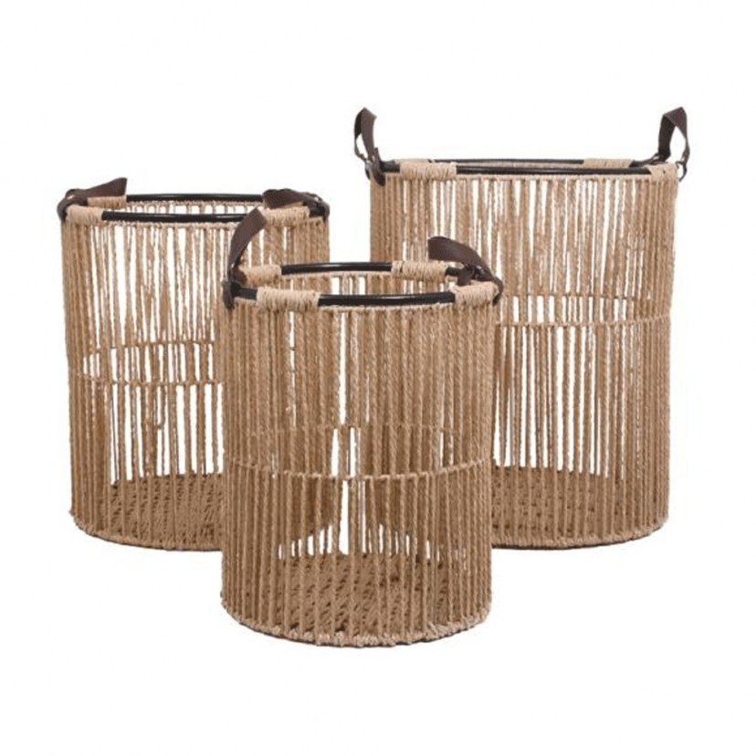 Do you want to make the decoration of your space more warm and boho? The Storage Basket Set (3Pcs) 374-124-041 will give you the solution. It is made of rope and metal and has a stylish design. The set consists of three baskets of different sizes.