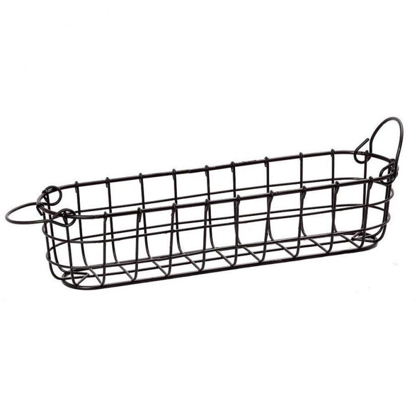 The simple and sleek design, combined with the metallic construction in a dark neutral color that fits in any space, make the TAK217 Decorative Basket ideal for organizing your space! It is food-safe and hand-washable. Use it for your household or professional equipment and upgrade it! Quality: Metal. Dimensions: 1 Basket: Length: 38 cm, Width: 9.5 cm, Height: 8 cm.