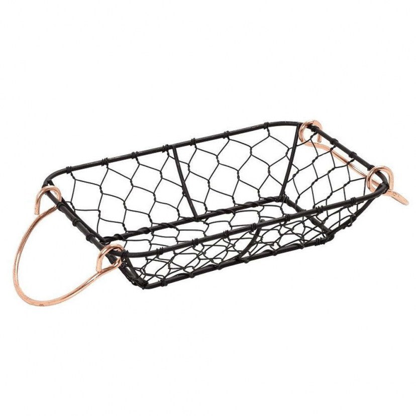 The Rectangular Decorative Basket TAK210 will organize your space in a modern way and add a special style to it! Its dark-colored metallic construction, with unique handles in a beautiful and impressive color, will upgrade the decoration of your home and your professional space! It is suitable for food and hand washing is recommended. Quality: Metallic. Dimensions: 1 Basket: Length: 23 cm, Width: 15 cm, Height: 5 cm.