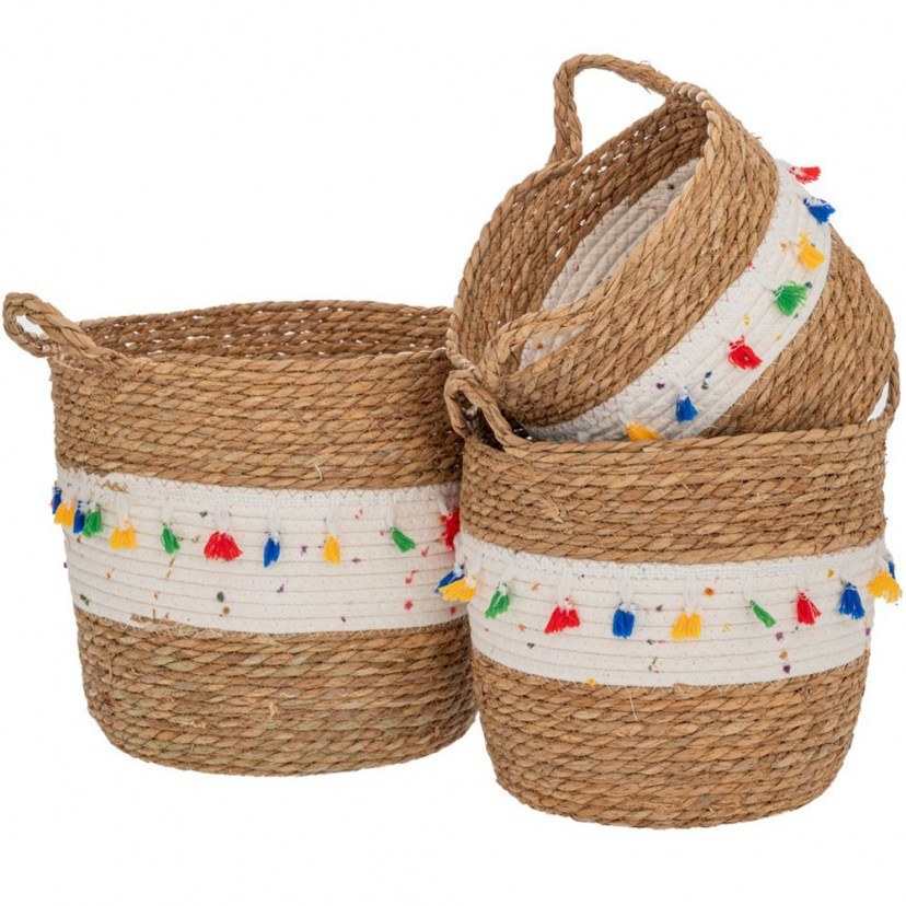 Ανανεώστε τη διακόσμησή σας με το Σετ Καλάθι Με Κρόσια (3Τμχ) 90162 από φυσικό ραττάν, διακοσμημένο με παιχνιδιάρικα πολύχρωμα pon-pon περιμετρικά. Τα κρόσια προσθέτουν κίνηση και ζωντάνια, ενώ το ραττάν χαρίζει φυσική ζεστασιά και ανθεκτικότητα. Ιδανικό για αποθήκευση και οργάνωση, αλλά και για να δώσετε μια boho πινελιά σε κάθε δωμάτιο. Λειτουργικό και κομψό, είναι η τέλεια επιλογή για μοντέρνα σπίτια που αγαπούν το στιλ με χαρακτήρα. Το σετ αποτελείται από τρία τεμάχια.