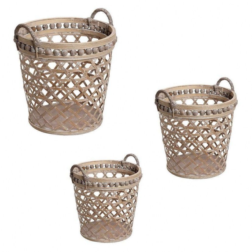 The KIK209 Basket Set consists of three baskets of different sizes, which are made of bamboo. This is a rustic decorative option that will make your space more beautiful and more impressive than ever! They can be used as storage spaces or to place pots inside and to highlight your favorite plants in the best way.