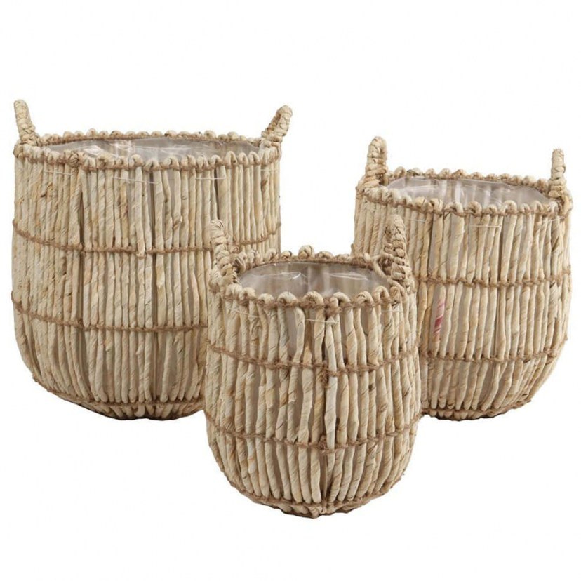 Το Σετ Καλάθια Αποθήκευσης Theros (3τμχ) 031532 είναι μια φυσική και ιδιαίτερη πρόταση για το σπίτι σας. Κατασκευασμένο από φύλλα καλαμποκιού, ξεχωρίζει για την υφή και τον αυθεντικό του χαρακτήρα, ενώ το χειροποίητο πλέξιμο προσδίδει μοναδικότητα σε κάθε κομμάτι του. Οι φυσικές αποχρώσεις του ταιριάζουν ιδανικά με boho, rustic αλλά και πιο minimal διακόσμηση, ενώ ο ιδιαίτερος σχεδιασμός του προσθέτει έναν ζεστό, οργανικό τόνο στον χώρο. Το σετ περιλαμβάνει τρία καλάθια διαφορετικών μεγεθών, προσφέροντας άνεση και ευελιξία στην αποθήκευση.