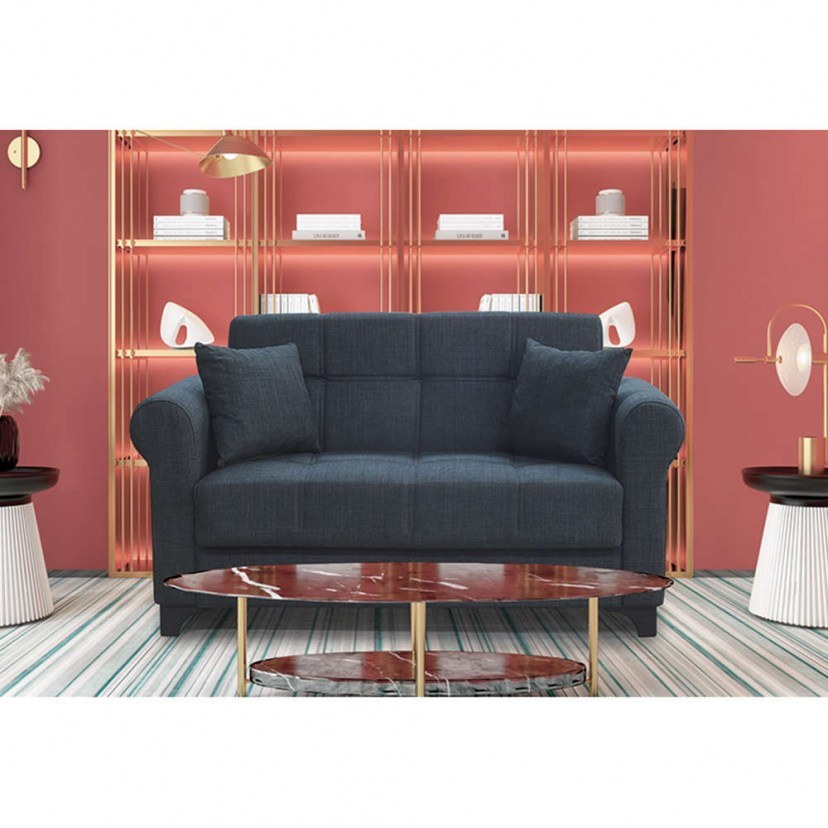 The Azur Sofa-Bed is an excellent choice for your space, as it combines functionality and style with a timeless and impressive design. With quilted fabric in a wonderful color and a special design on the arms, this modern sofa lends a timeless elegance to your space. When you need an extra auxiliary bed, you can easily convert it into a bed, offering a comfortable sleep for you or your guests. The interior free space under the seat provides additional storage space, making it even more practical and functional. The product is delivered unordered. Quality: