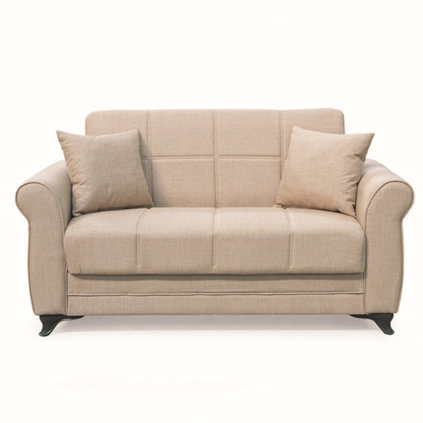 The Lena Two-Seater Sofa-Bed is the ideal choice for those of you looking for style, comfort and functionality in a sofa. With an elegant design and upholstered in quality fabric, it fits easily into any space, while decorative cushions add an extra touch of sophistication. It has a mechanism that allows it to be easily converted into an auxiliary or children's bed and a large storage space for organizing your personal items. The product is delivered unordered.