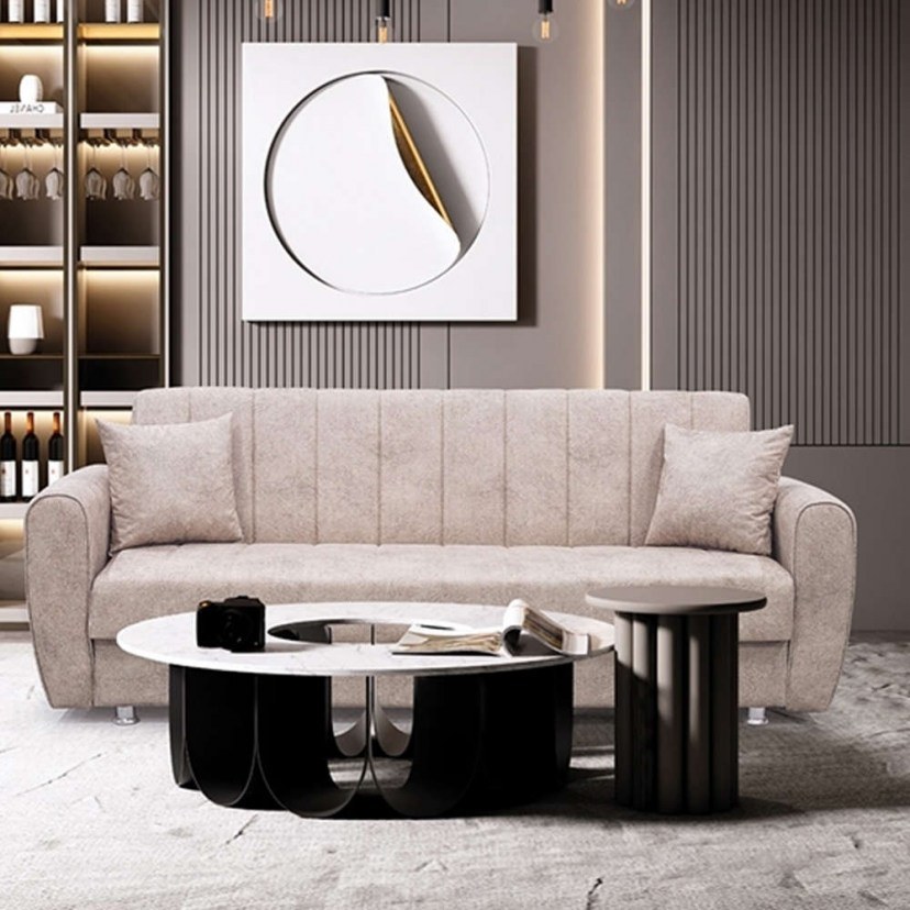 The Elva Sofa-Bed has a high aesthetic design, which will make you love it. Place it in your home or business and you will easily realize that you have made a real upgrade of the space. It is ergonomic and can be converted from a bed to a sofa easily and quickly. At the bottom it has a storage space for various items. It is particularly comfortable, so as to offer a comfortable seat and sleep. Decorative pillows are also included. Quality:
