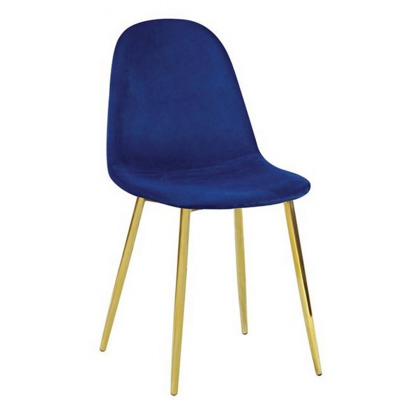 The Celina Velure Blue EM907.5GV Chair is a piece of furniture with a unique aesthetic that will refresh your space and add a touch of luxury. Its construction consists of metal legs with a gold-colored coating and its seat is upholstered in velure fabric. The product is delivered unassembled. Assembly instructions are included in the package. Quality: Metal & Fabric. Dimensions: 1 Chair: Length: 45 cm, Width: 54 cm, Height: 85 cm.