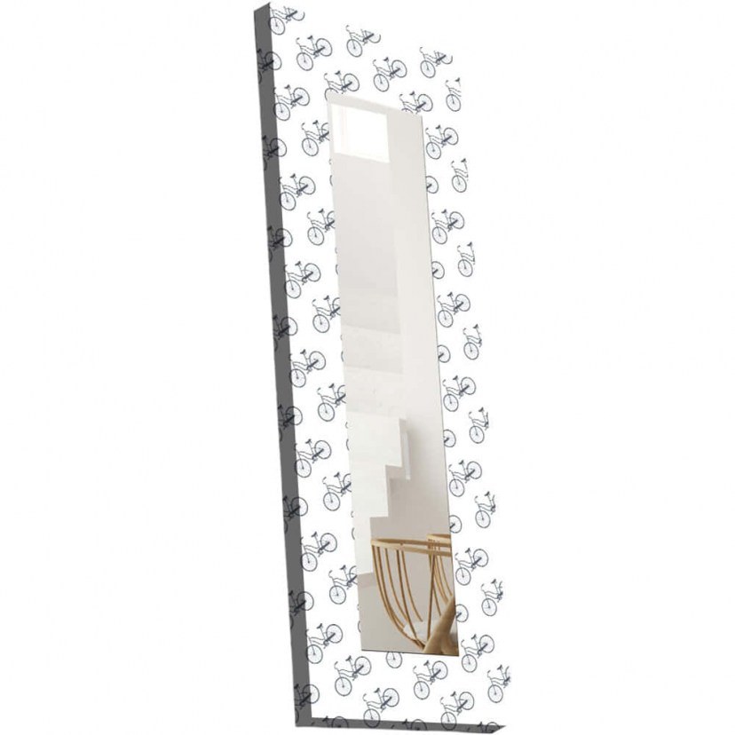 The 814MVT1103 Wall Mirror has a playful design with cute little bikes, which makes it ideal for spaces with a modern and eccentric aesthetic as well as for a children's room. It provides crystal reflection and has a frame made of wood, ensuring long-lasting durability and natural beauty. The mirror panel is canvas on MDF, offering a soft and elegant feel to the overall design. With a mirror size of 20x100 cm, it's perfect for making an impressive statement without taking up too much space.