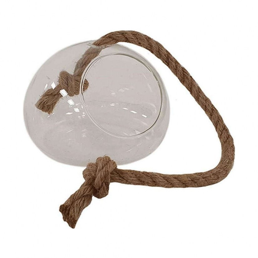 Original and impressive Hanging Candle Holder with Rope 00.03.32028, which will renew your space and add a unique touch! It is ideal for your balcony or garden, as you can hang it on your plants and trees and create a warm and beautiful atmosphere! Quality: Glass. Dimensions: 1 Candle Holder: Diameter: 16 cm, Height: 12 cm.