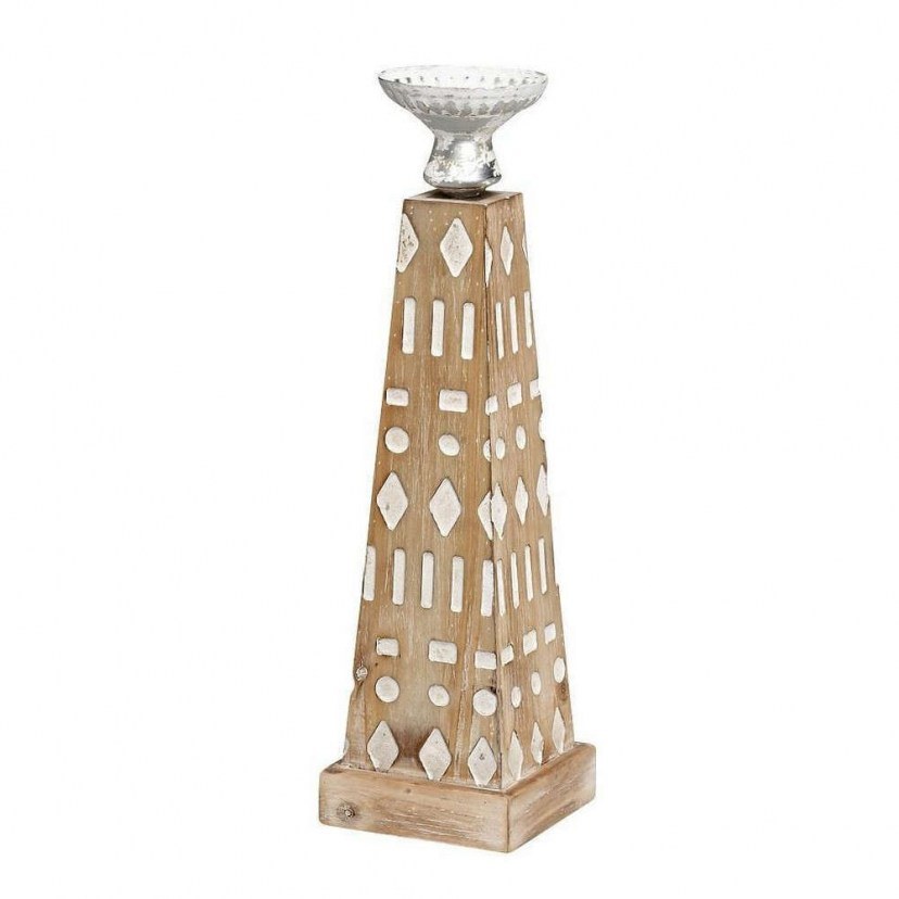 The VIN306 Candlestick is an addition that everyone would like to make in their space, because the beautiful colors and careful construction will impress everyone. It is a rustic wooden object, which bears geometric patterns throughout its surface. Quality: Wood. Dimensions: 1 Candlestick: Length: 14 cm, Width: 14 cm, Height: 47 cm.