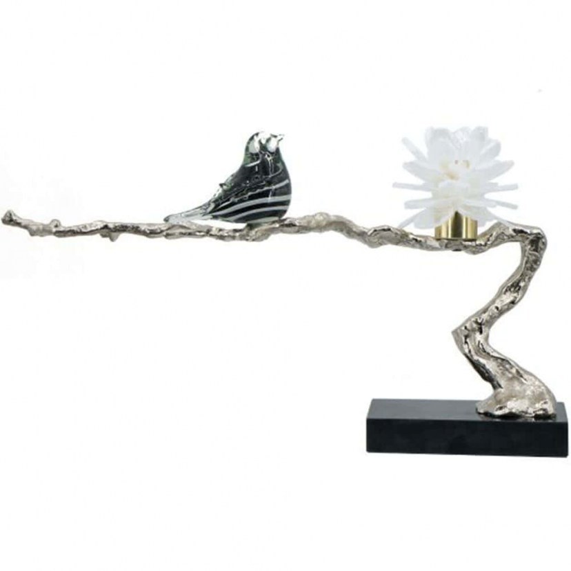Το Κηροπήγιο Branch 77737-DS είναι ένα μοναδικό κομμάτι που φέρνει την τέχνη της φύσης στον χώρο σας. Ο ιδιαίτερος σχεδιασμός του αποτυπώνει ένα κλαδί με δύο κομψά πουλιά να κάθονται πάνω του, δημιουργώντας μια ποιητική και γαλήνια ατμόσφαιρα. Κατασκευασμένο από μέταλλο, σεληνίτη και με μαρμάρινη βάση, το κηροπήγιο αυτό συνδυάζει την υψηλή αισθητική με την πολυτέλεια των φυσικών υλικών. Ο συνδυασμός των υλικών και το συμβολικό του σχήμα το κάνουν ιδανικό για να διακοσμήσετε οποιοδήποτε τραπέζι, ράφι ή τζάκι, προσθέτοντας μια αίσθηση ηρεμίας, κομψότητας και μοναδικότητας.