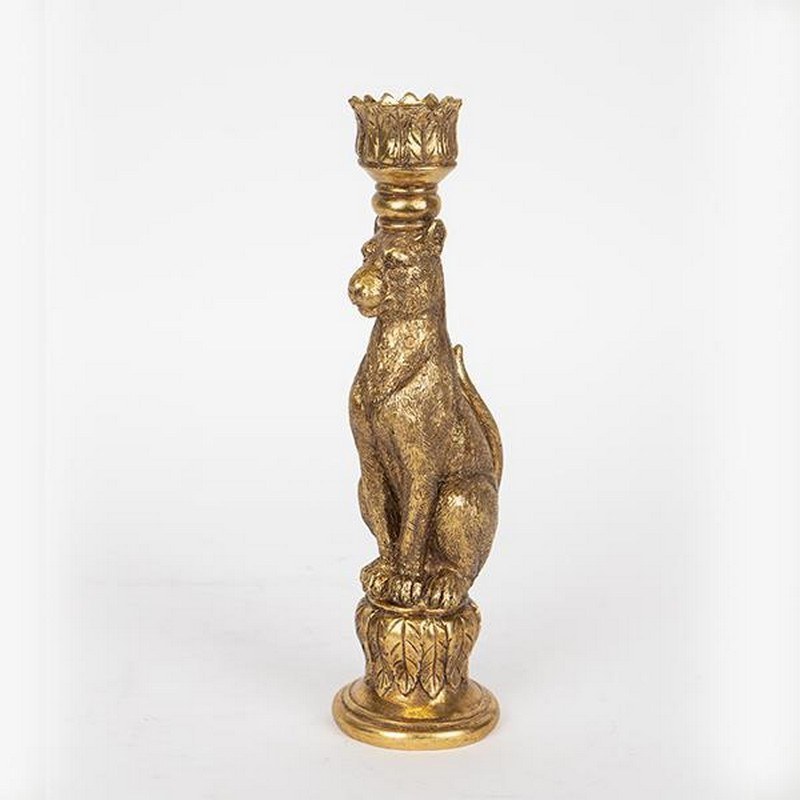 The Leopard Candlestick 752-26046 is a truly eye-catching piece that will catch all eyes. With a base representing an aristocratic leopard, this candlestick combines the beauty of nature with artistic creation. Made from polyresin, it features an antique finish that lends a sense of classic elegance and timeless appeal.