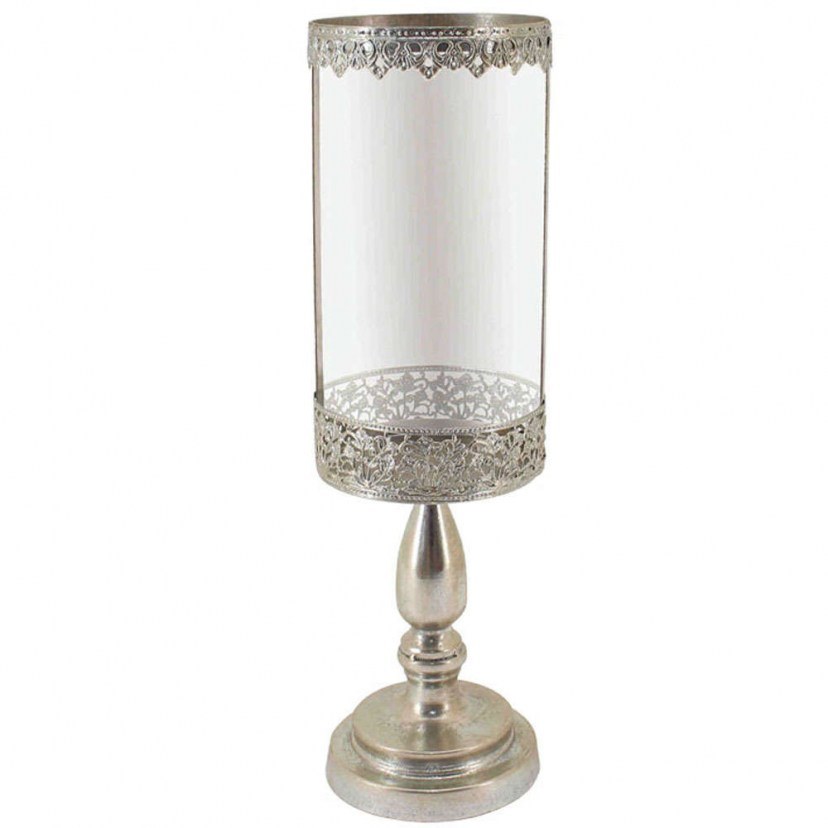 The Distressed Candle Holder features a sleek, tall metal frame with a distressed finish and perforated design, adding a retro and sophisticated aesthetic to your space. The included glass container allows you to light your favorite candle safely, creating a warm and atmospheric corner. Ideal for those who love vintage decoration with special details.